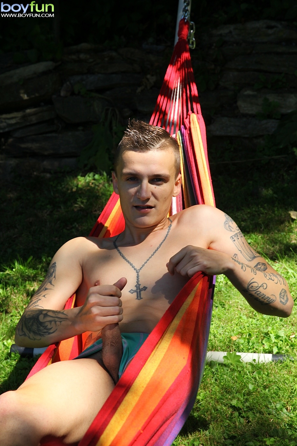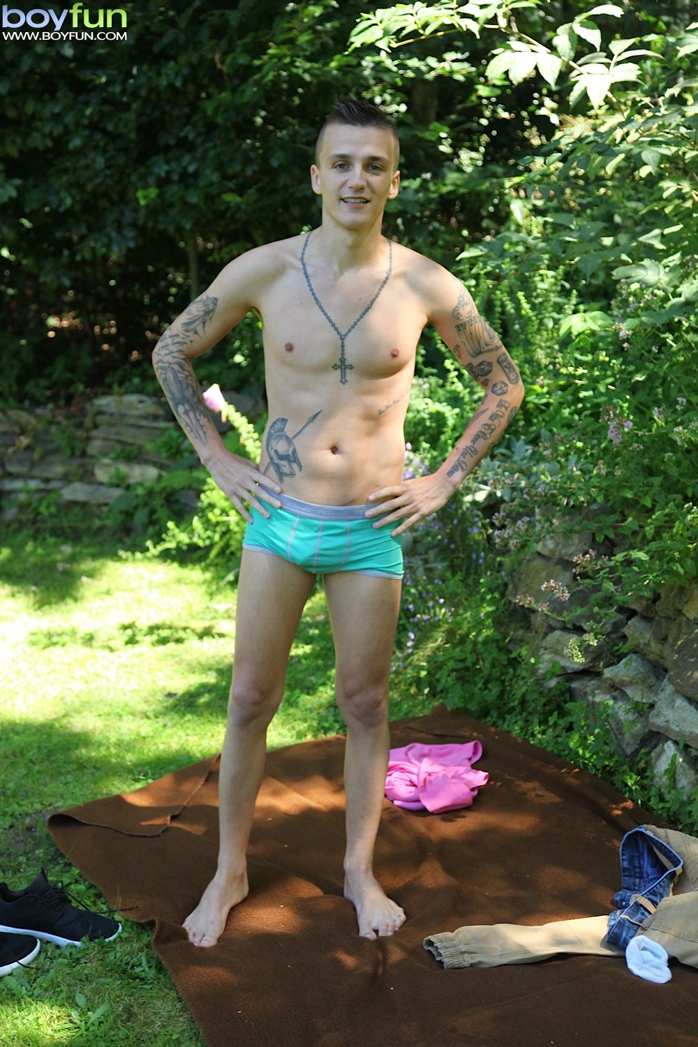 : Dom Ully strips and masturbates out in the backyard.