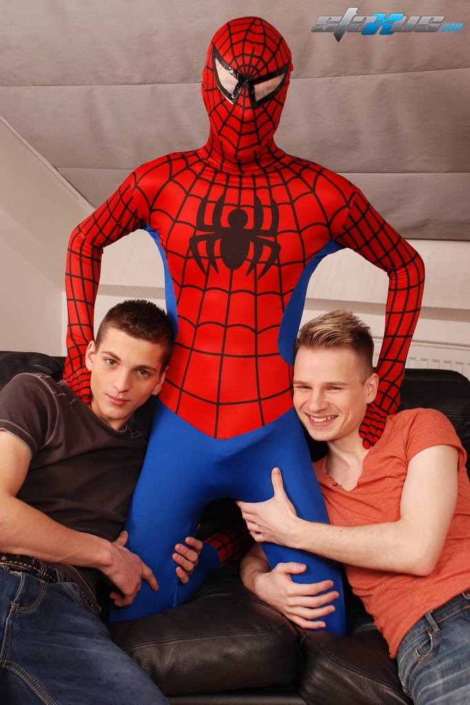 Staxus: Staxus - Gang Bang: Dick Smolderingly Hot Threesome As Spiderman Fucks & Creams Two Horny Twinks!