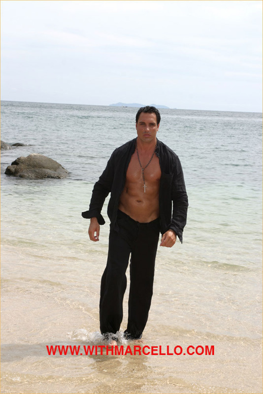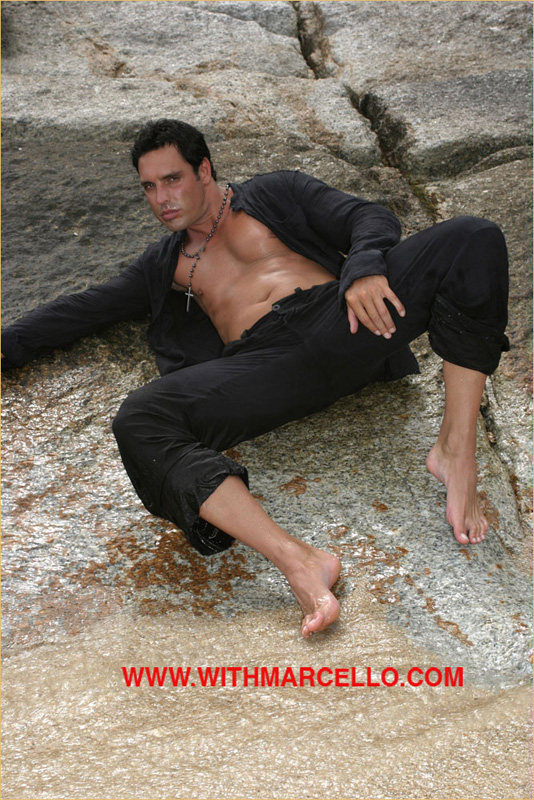 : Marcello looking hot and sticky wanking by on a tropical beach