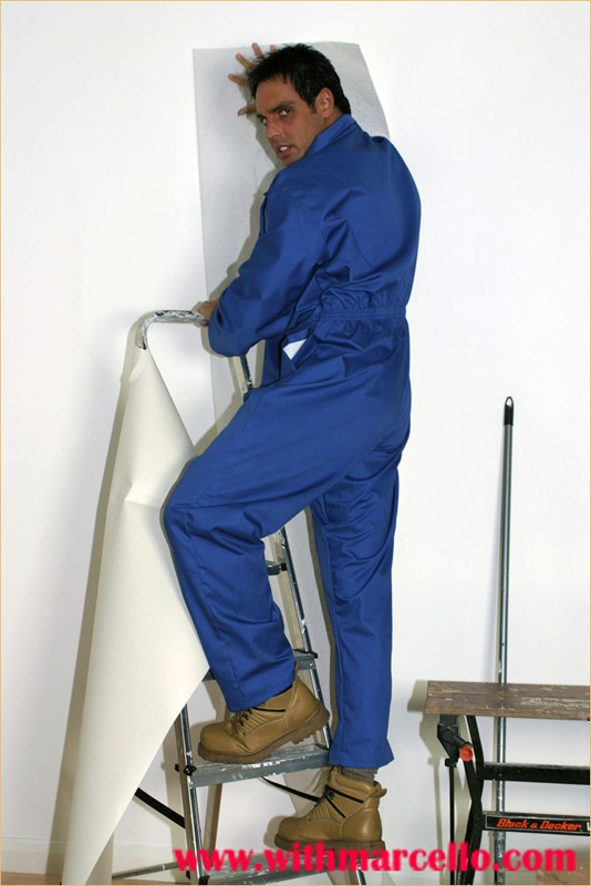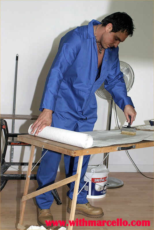 : Marcello takes a break from the decorating and has a slow wank to relax