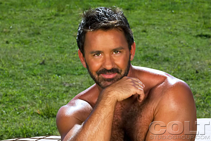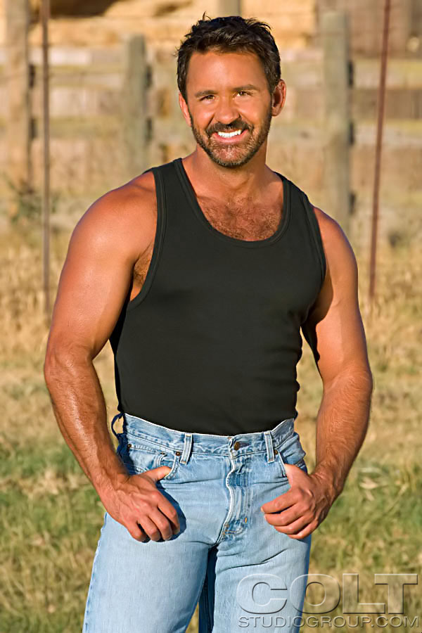 : Hairy muscle hunk Tom Chase outdoors
